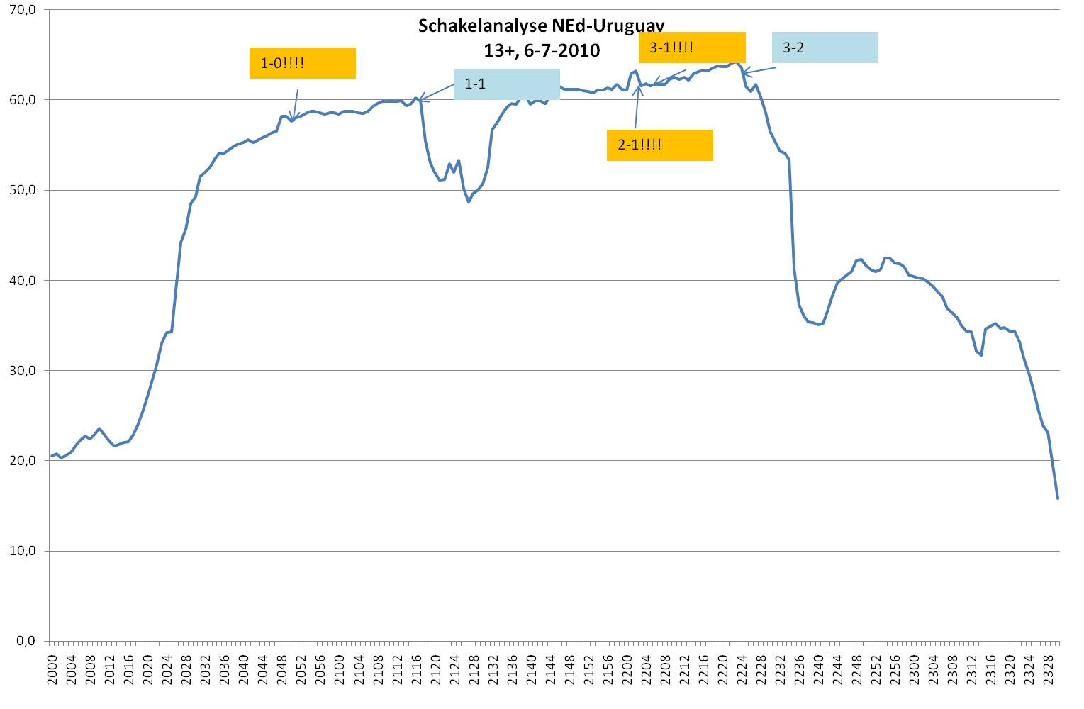 En het verloop per minuut, voor de freaks. Let op de afhakers na de 1-1:
