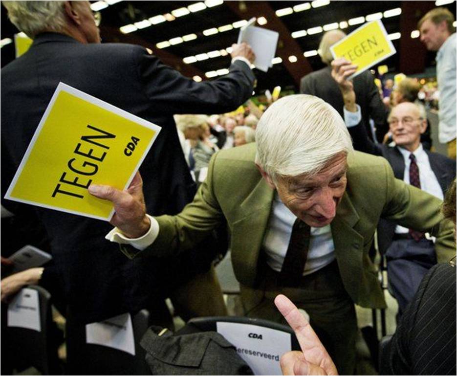 Gisteren werd er een prachtig nieuw TV format geboren tijdens het CDA Congres. Geef sprekers 1 minuut de tijd om een zaal met honderden christenen te overtuigen. Prachtige intro's als van "Donner uit Den Haag" en 'Dries van Agt ben ik" werden mooie televisiemomenten. Camiel Eurlings brulde – "inclusief Fortuyn groet" – de barsten in uw flatscreen, ook mooie televisie. Ook tranen van CDA kopstukken Bleker en Verhagen, alles werd in de strijd gegooid. En met succes. Gemiddeld 740.000 kijkers lieten het winkelen op zaterdag voor wat het was en zaten gekluisterd aan de buis. Het waren overigen voornamelijk bejaarden die deze CDA Got Talent show zaten te kijken. Er werd 9% kijkdichtheid en bijna 65% marktaandeel op 50+ gescoord op dagtelevisie. Bij de stemming rond vijf uur werd een hoogtepunt van 1,4 miljoen kijkers genoteerd. Jan Slagter zou zijn vingers er bij aflikken. Hoe dan ook, CDA gaat weer regeren, zij weten immers wat goed is voor u. En ze gaan gelijk weer beter in de peilingen. Wilt u nog een compilatie terug zien, dan kan dat hierrrr.
